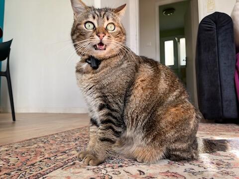 Voici Pachat il est né le 14/07/2023 il est castre il aime les câlins les jeux de lumière.il à vécu avec sa sœur jusqu’à fevrier (elle a été renversée par une auto) il aime le jardin et connaît la chatière (aimant au cou). Il a rencontré des chiens mais s en tenir éloigné c est un chat casanier lorsqu il reçoit sa dose de câlins. Il est un peu enrobé bien qu il ne mange pas tant .son oreille droite fendue (sa 1ere rencontre avec un matou) lui donne un air piraté mais c est un vrai chou pinot