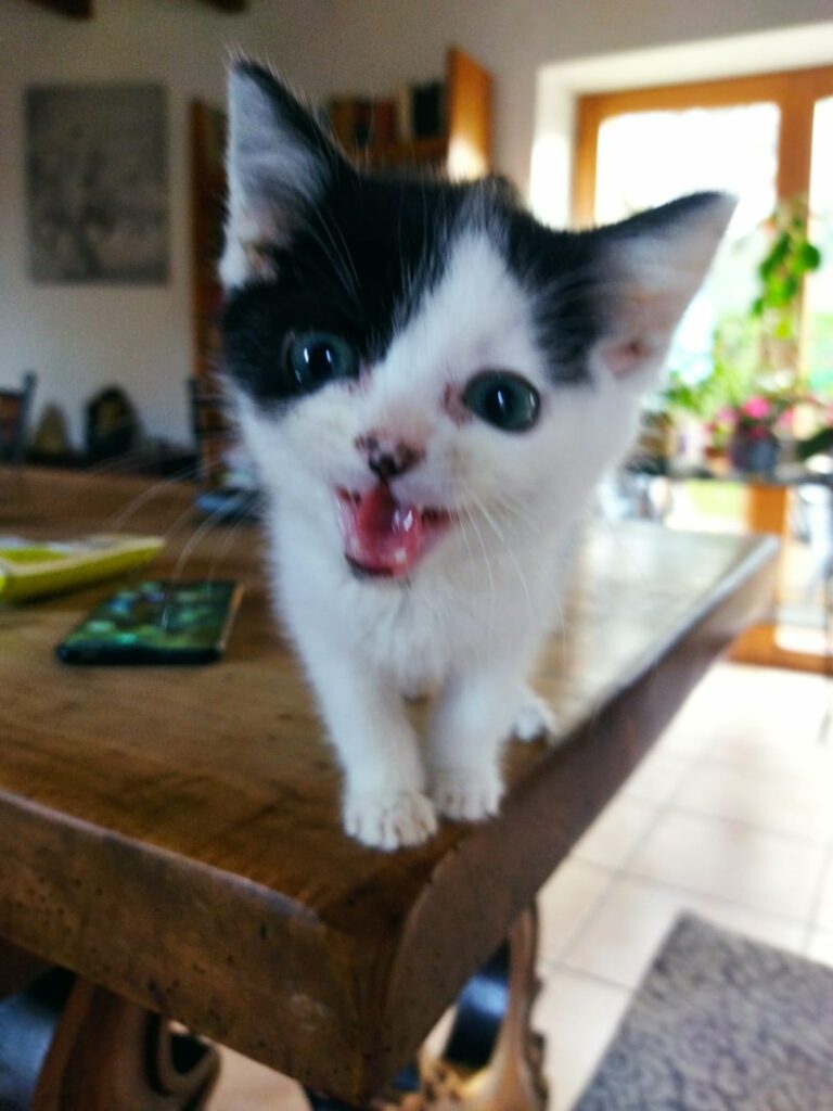 Ce n’est ni un chat de salon ni un chat de goutière, ou bien un peu des deux. Je l’ai recueilli alors qu’il n’était pas sevré par sa mère. Il a donc un comportement particulier et demande de l’attention.